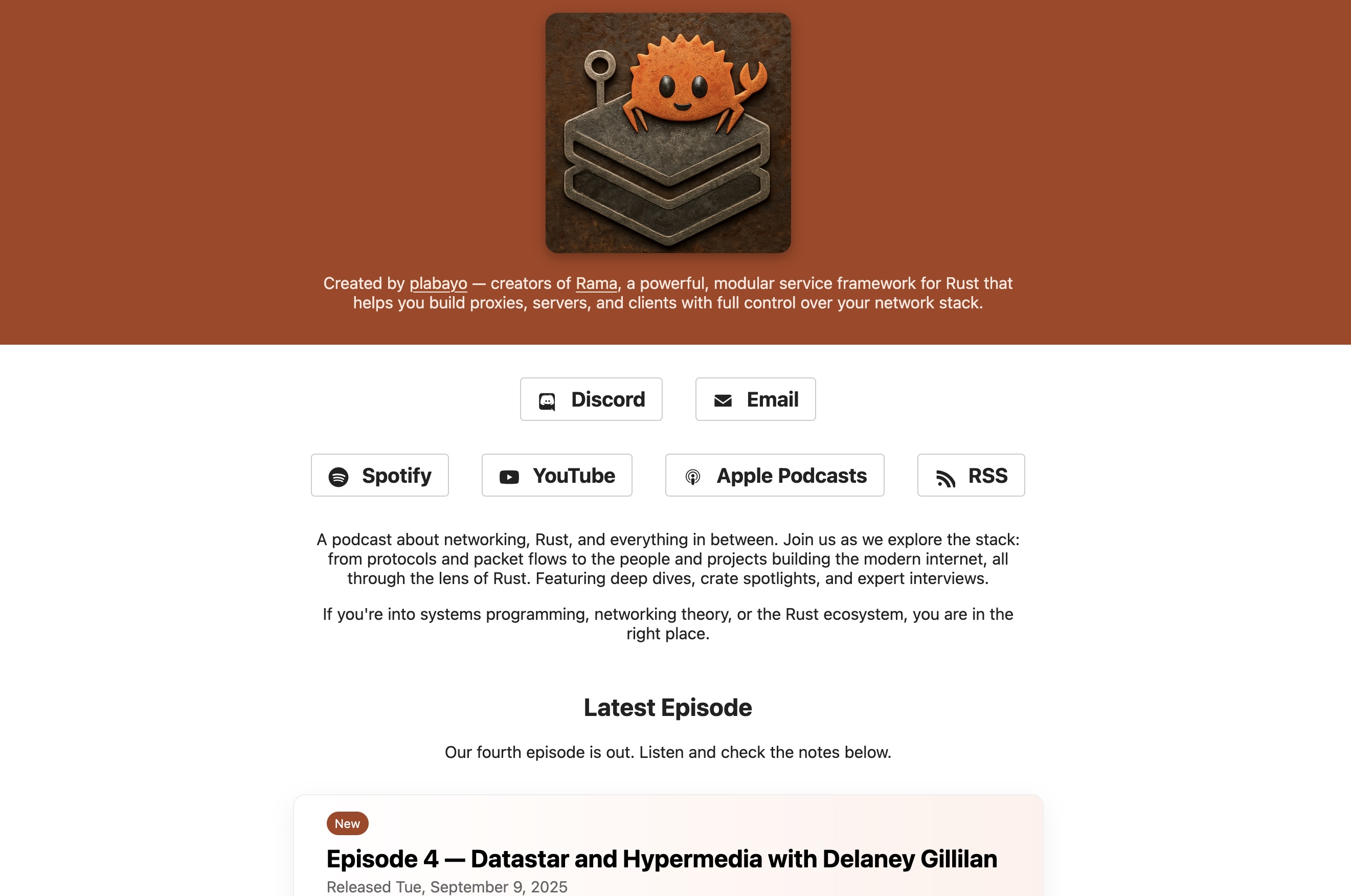 A podcast about networking, Rust, and everything in between. Join us as we explore the stack: from protocols and packet flows to the people and projects building the modern internet, all through the lens of Rust.